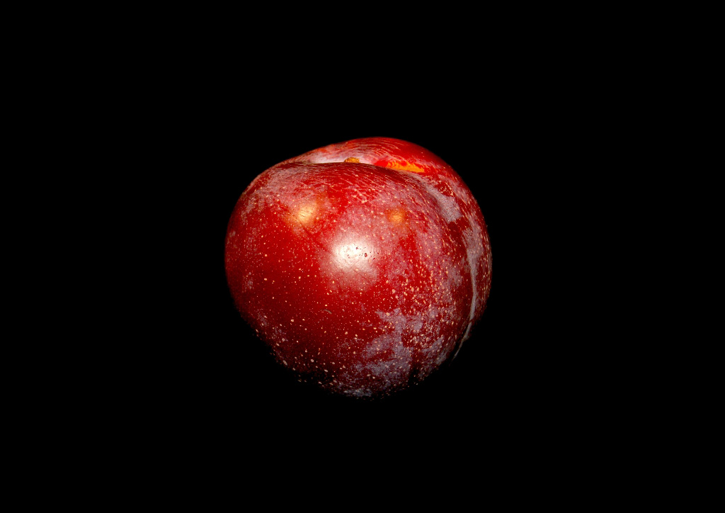 • There are tiny lighter spots on the plum which you may notice as you slowly move your finger around the image.,